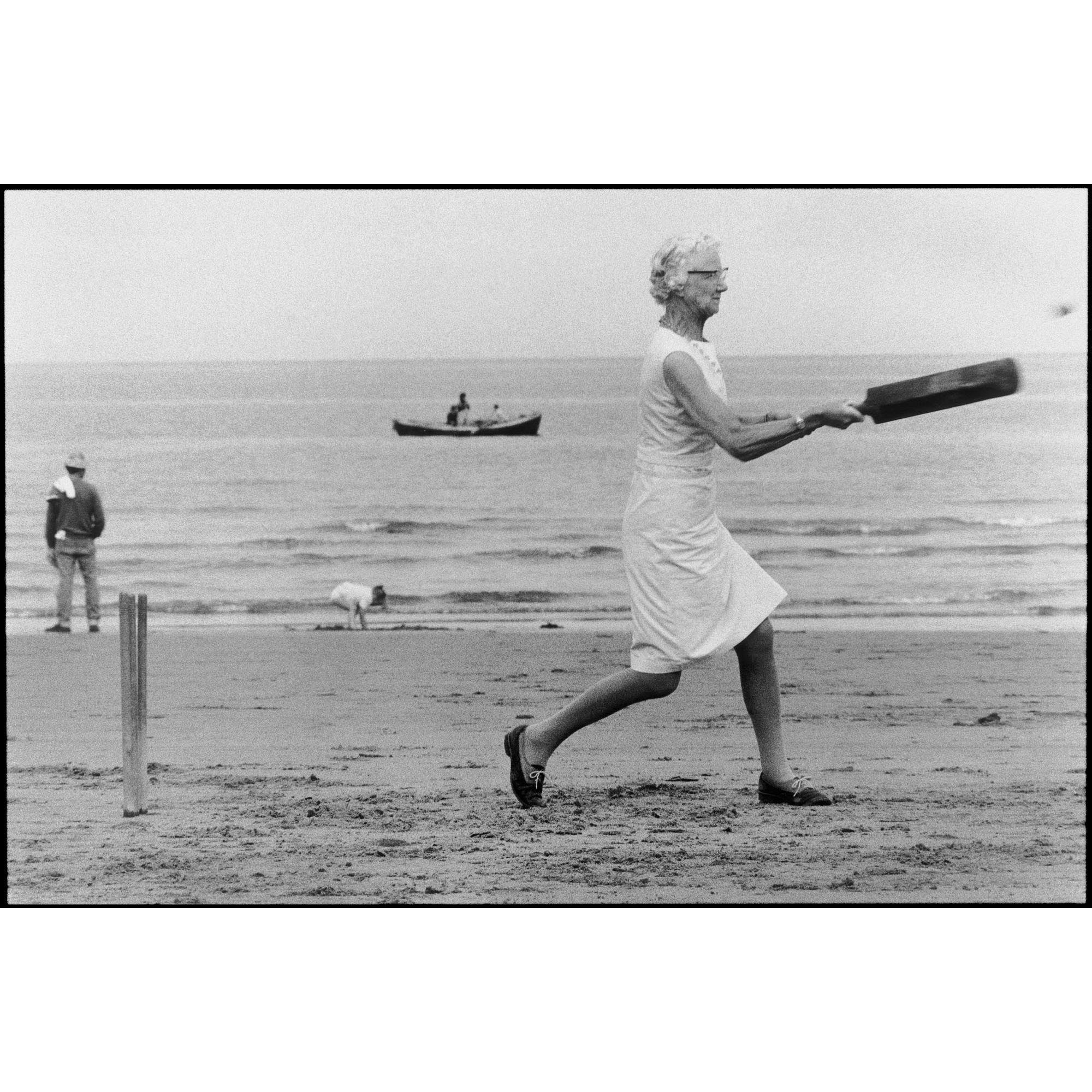 Whitby, England, 1974. On the beach, generations come together over a game of cricket.