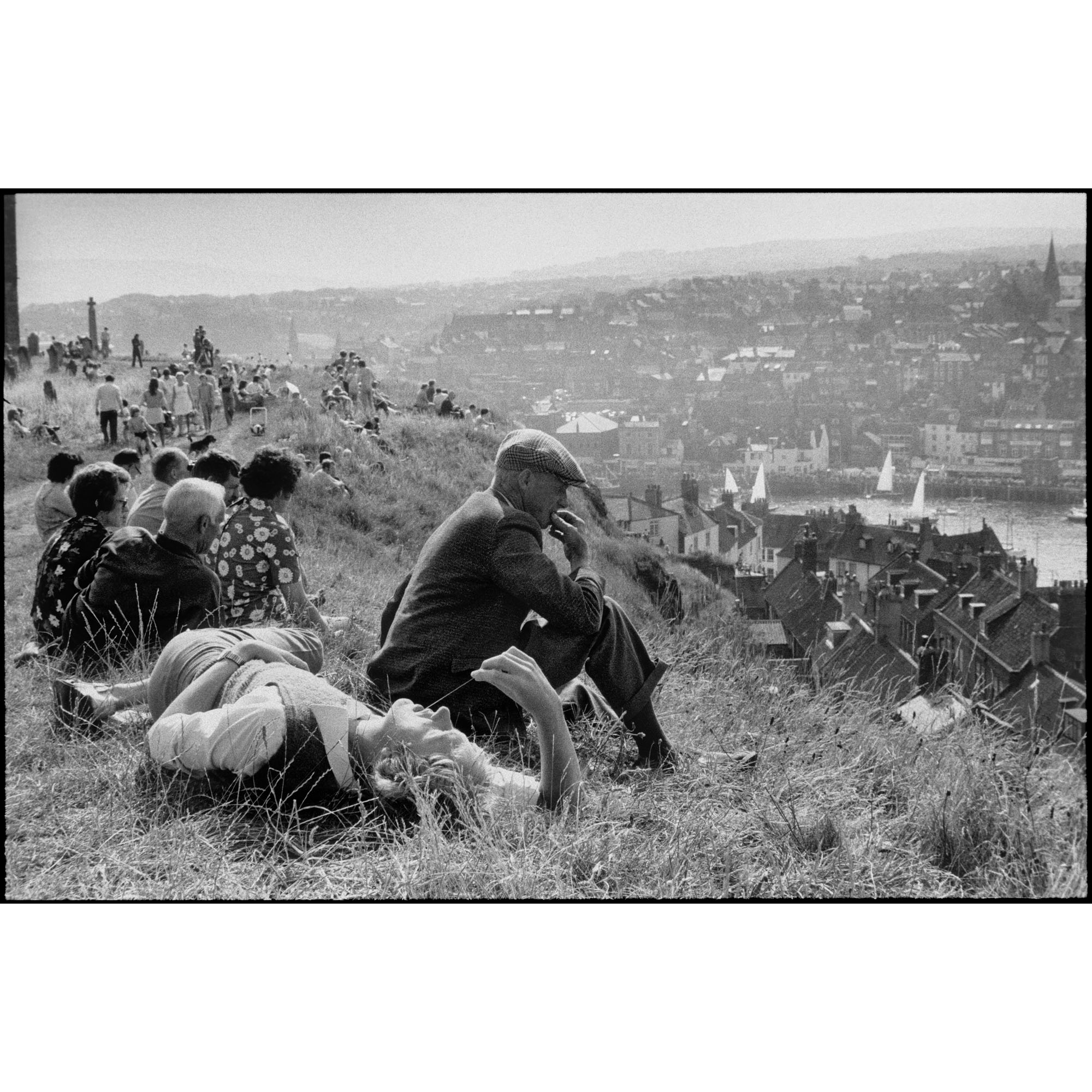 Whitby, England, 1974. On a sunny Sunday afternoon, people gather on the hill above the harbour to relax and daydream.