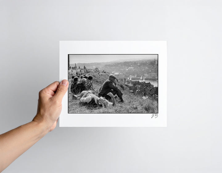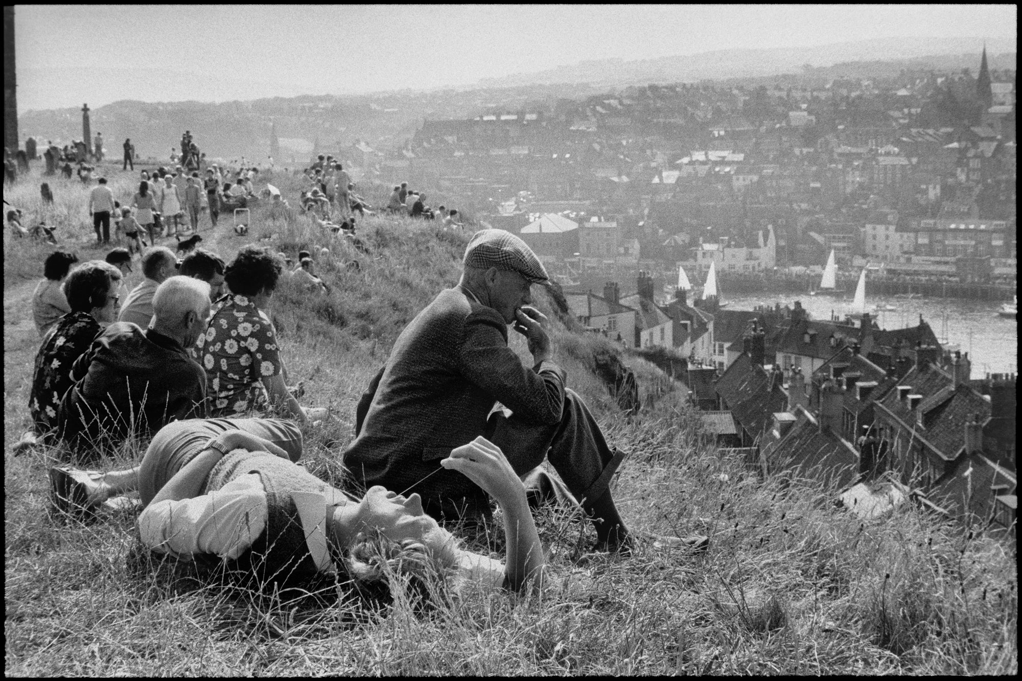 Whitby, England, 1974. On a sunny Sunday afternoon, people gather on the hill above the harbour to relax and daydream. This image appears on the cover of Ian Berry’s landmark book “The English”.