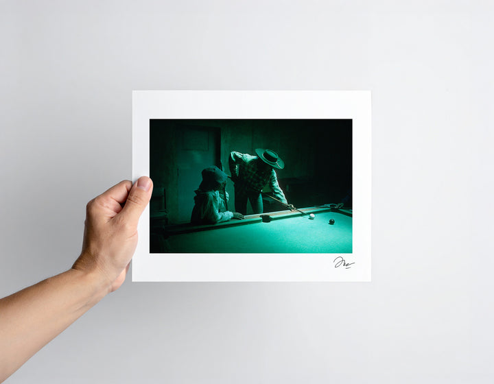Argentina, 1996. Pool players in a bar along the Altiplano rail route.